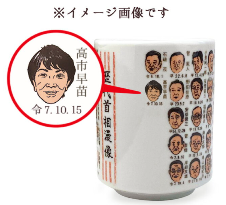 【予約販売】【高市新総理大臣が載った 】【2025年10月更新 】 歴代首相漫像湯呑み 寿司湯呑み 湯呑 ゆのみ 湯呑み 茶器 美濃焼 食器 国産 日本製 箱無し